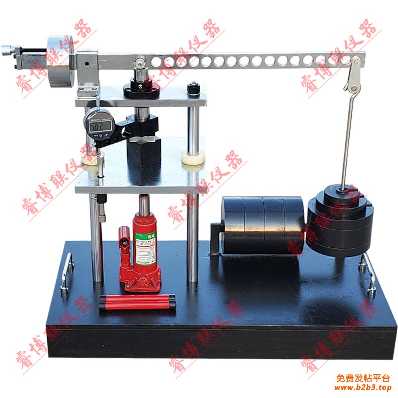 试验机由底座、杠杆机构、千斤顶及百分表变形测量装置等组成。