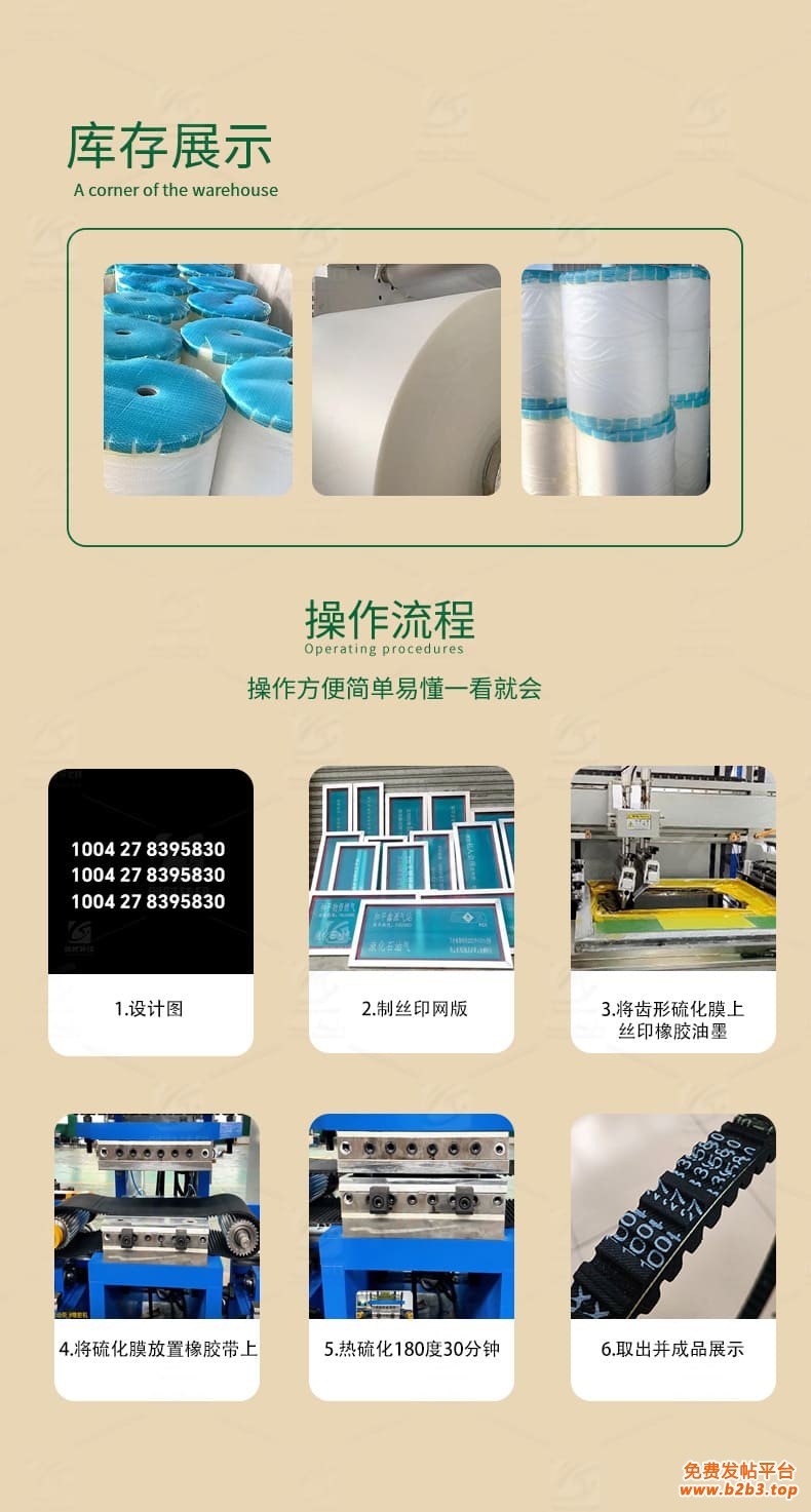 凹槽齿形印花软硫化膜 圆弧齿硫化韧性膜 多沟传动工业皮带硫化槽内转移膜