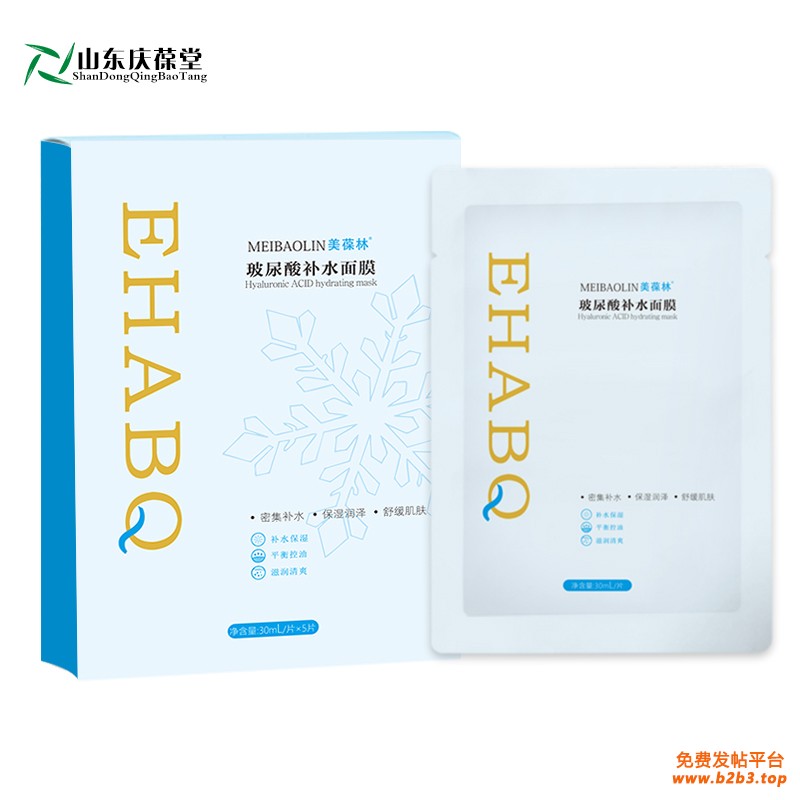 玻尿酸补水面膜批发一件代发 化妆品代加工厂家山东庆葆堂