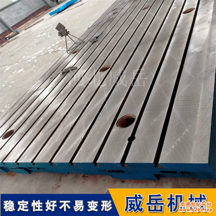 铸铁平台设备前的根底施工一般包含进程:根底洞的修补、装设模板、钢筋的处置、设备地脚轨和孔模板的设置、尤其要保证灌溉的水平。对根底的质量进行严厉的查看保证其质量。一般需求将混凝土强度到达70以上,铸铁平台设备才答应设备。一般小的设备根底可用钢球撞痕法测定相关的强度。