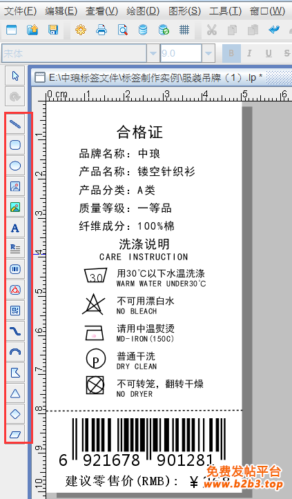条码标签打印软件批量制作服装吊牌已经完成,大家看了是不是感觉很简单,事实上,中琅条码标签打印软件不仅支持服装吊牌的批量制作,而且还支持防伪标签、物流标签、商品标签、超市价签、医药标签、珠宝标签、图书管理标签、名片、胸牌等各种尺寸标签的设计制作及批量制作工作。