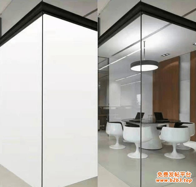 智能电控调光玻璃不仅具有普通玻璃的所有特性,还可以隔音、隔热、隔紫外线,同时具备隐私保护功能,通过控制电流的通断可控制透明与雾化状态,调光玻璃在不透明时,还可以在打造室内隐私空间的同时作为会议投影使用。
