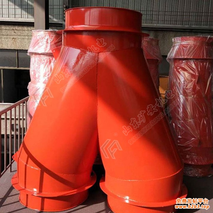 矿用通风机分风器适用于FBD矿用隧道用轴流局部通风机双机并联,主备风机联合结构。一般煤矿上局部通风机配套使用的分风器有布质分风器,与铁质分风器。布质分风器当风量过大时容易破损,鼓开。而铁质分风器,寿命长,分风器密闭性能好,漏风率为零。Kuangan002