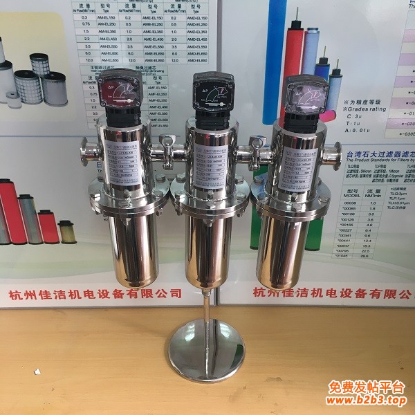 进入除菌过滤器的压缩空气必须先经过至少精密过滤器及干燥机。除油、除水、除尘,油雾浓度应≤0.01PPM,否则将影响除菌滤芯,达不到预期的除菌效果。
