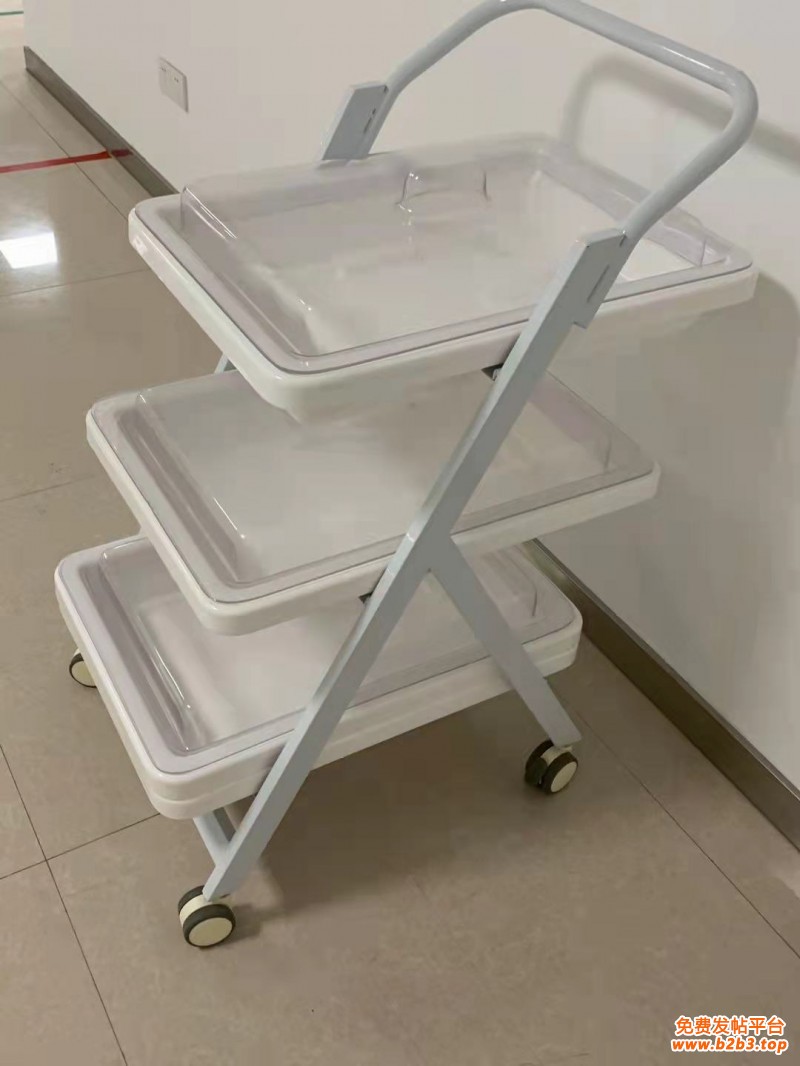 3由一次压模成型的高分子托盘、全钢烤漆车体、静音脚轮组成,具有耐腐蚀、不沾水、车行顺畅、取放方便等优点;