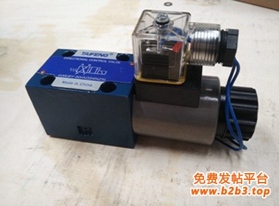 山东泰丰智能控制股份有限公司(原山东泰丰液压股份有限公司)生产的4we6型电磁换向阀是用电磁铁直接推动阀芯移位工作的小型方向控制阀,主要用于控制液体的通断和流动方向,也可以作为先导控制阀,以控制各种大通径的液压阀(电液换向阀或二通插装阀),实现对大功率液压阀的先导控制。其特点是:1.以直动式电磁铁操作方向滑阀作为标准类型;2.安装面符合DIN24340A型ISO4401和CETOP-RP121H;3.带可拆卸线圈的湿式直流获交流电磁铁;4.电磁铁可旋转90度;5.可以迅速而方便的更换电磁铁线圈而不引起液压系统漏油;6.可选的手动应急操作