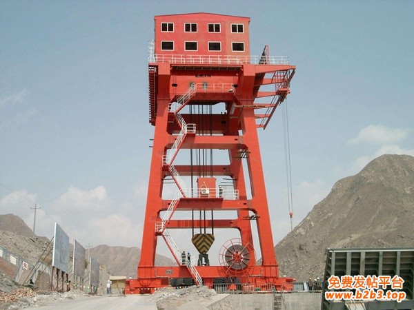 广东深圳坝顶门机厂家(17516773211)坝顶门机是一种专门安装在大坝坝顶,用于大坝建设、维护以及相关设备吊运等作业的门式起重机。