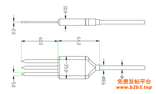 土壤温度:传感器在一根探针上布置了一颗数字感温芯片,用过覆铜的方式增加温度传导效率,用于测量探针表面,也就是土壤的温度。