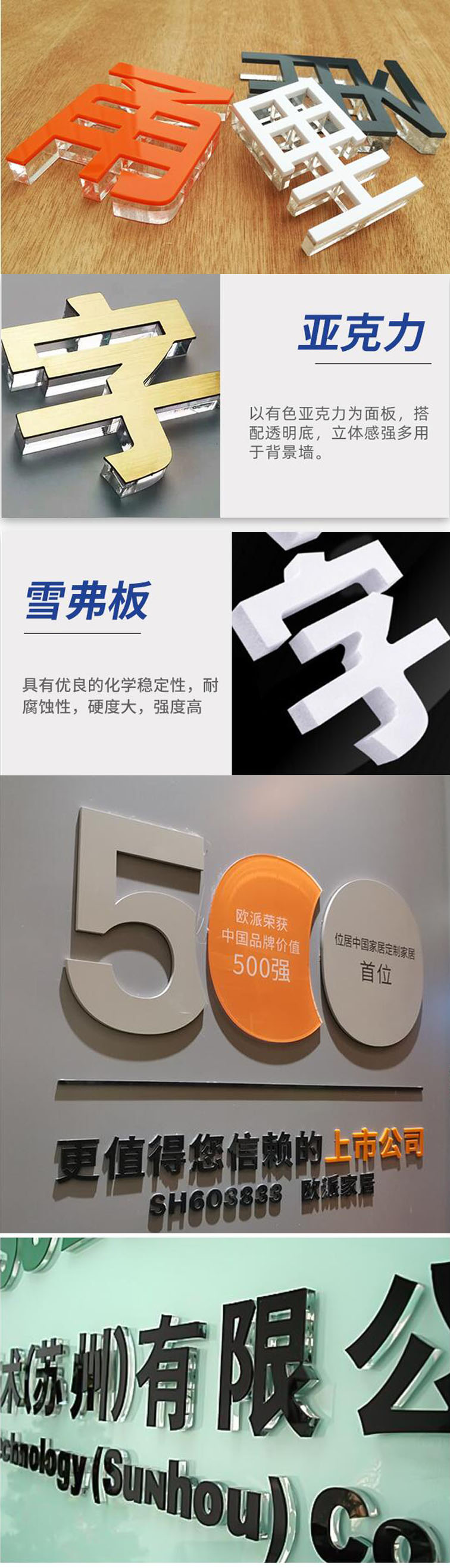 工艺与材质选择:采用水晶字、精工字、亚克力字、PVC 字雕刻等工艺,搭配 3D 建模预览效果,让客户在制作前就能直观看到效果。   在材料选择上严格把关,确保使用的每一种材料都符合质量标准,同时遵循标准化的施工流程,保证施工质量,让形象墙不仅美观,而且坚固耐用。