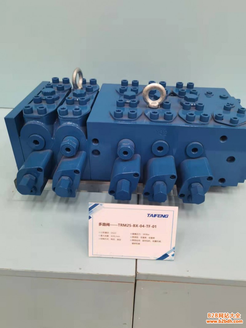 多路阀系列 泰丰智能 工程机械液压元件 I TRMNG (M7-25)5系列流量共享型多路阀 通径:25 压力(bar) : 380(泵侧), 420(执行元件侧) ; 额定流量(Lmin): 700 主要特点: 片式组合结构,可按需灵活组合 .负载压力补偿,与负载压力无关的流量分配 .液压先导控制,电比例(或开关)控制 .各联工作优先顺序可调 .通过LS溢流阀限制系统的压力; 通过二次溢流阀限制执行系统不过载及设定二次压力压损小, 能耗低 控制,微动性好,舒适的操纵性 重复精度高,滞环小 主要应用领域1举例:TRM20E新型多路阀流量加大复合动作流畅厂家生产制造