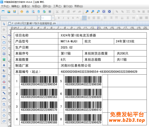 在上一篇文章《条码打印软件如何制作电流互感器外包装箱标签》的基础上,我们来讲下如何在中琅条码打印软件中批量生成箱内产品条形码。