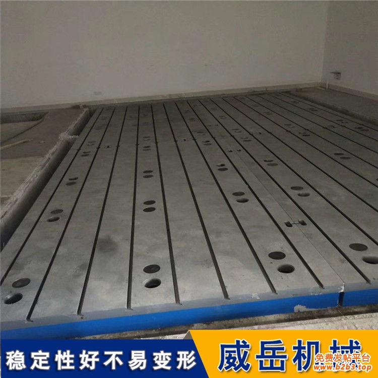 装配平台具体适用于用于机械、发动机的动力实验平板,设备调试,具有较好的平面稳定性和韧性,表面带有T型槽,可以用来固定实验设备;同时适用于各种产品的装配工作,装配平板,铸铁装配平台同时还用于机床机械检验测量基准,铸铁平台用于检查零件的尺寸精度或行为偏差,并作装配,铸铁平台在机械制造中也是不可缺少的基本工具。铸造的装配平板/铸铁平板面板厚度保证,铸铁装配平台表面硬度的测试方法是按铸铁平台刚度测试装置在被测铸铁平台工作面上装好测试装置,在不加砝码时,将比较仪的测头与工作面相接触(为使测量准确,可在测头与工作面之间放一块薄的量块)并记下读数。装配平台的塑性与韧性的提高,金属热处理是机械制造中的重要工艺环节,焊接平台与其它加工工艺相比,热处理一般不改变工件的形状和整体的化学成分,而是通过改变工件内部的显微组织,或改变铸铁平板表面的化学成分,赋予或改工件的使用性能。