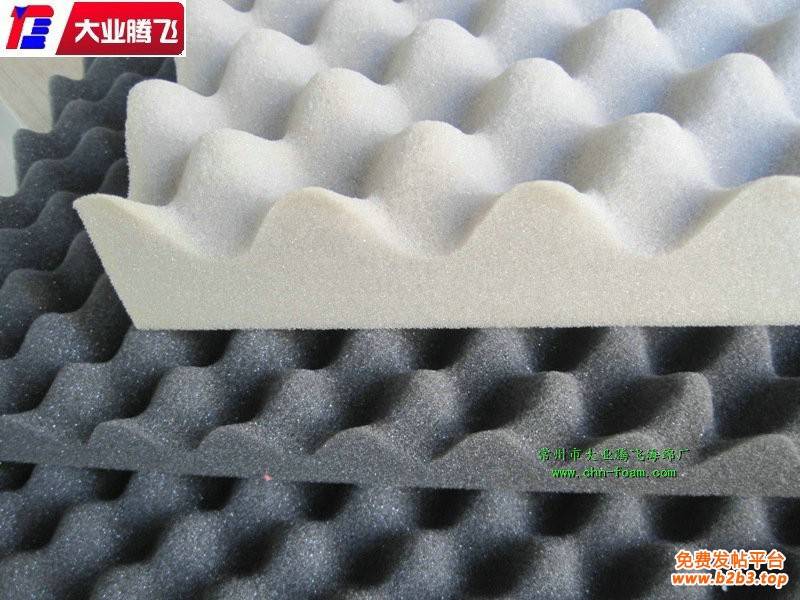 隔音海绵是把声音阻止在外面。常规平板海绵材料是微孔吸音材料,波浪海绵表面成蛋托形状,起隔音作用,其原理是将声波回旋与波峰之中,从而减弱,消失。