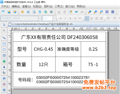 2. 在空白标签上制作产品外包装箱标签模板,制作方法可以参考《条码标签批量打印软件如何制作产品外包装箱标签》,这里不再详述。