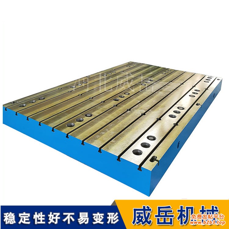 大型铸铁平台应用在动力机械设备的装配、调试、焊接、铆焊,这种产品表面带有T形槽,可以固定机械设备。大型铸铁平台采采用好细密的灰口铸铁或合金等材料制造,其工作面硬度应到170-220HB。