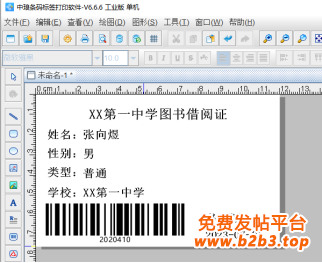至此图书借阅证标签上的文字和条形码就添加完成了,接下来的文章中我们会详细讲下如何用中琅条码标签批量打印软件来批量导入图书借阅者的照片,有兴趣的小伙伴请继续关注。